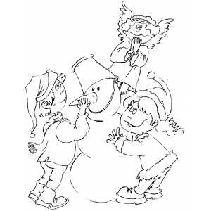 Children Finishing Snowman coloring page