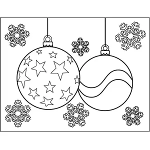 Christmas Ornaments with Stars Printable Coloring Page, free to download and print. Two Christmas tree ornaments decorated in stars and patterns dangle among snowflakes in this printable winter coloring page.