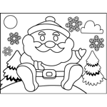 Fat Santa Sitting Printable Coloring Page, free to download and print. A fat, jolly Santa sits on a forested hill beneath falling snow in this printable Christmas coloring page.