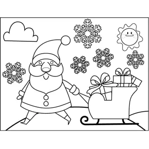 Santa Pulling Sleigh Printable Coloring Page, free to download and print. Santa Claus pulls a sleigh full of Christmas gifts through a flurry of snowflakes in this printable winter holiday coloring page.