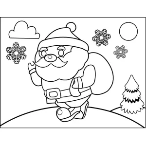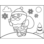 Santa Walking Printable Coloring Page, free to download and print. Santa Claus walks through a snowy hill with a bag of gifts on his back in this printable Christmas coloring page.