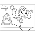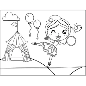 Winking Tightrope Walker Printable Coloring Page, free to download and print. This printable circus coloring page features a pretty tightrope walker who balances on one foot and winks at the audience.