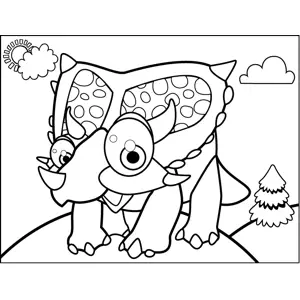 Excited Triceratops Printable Coloring Page, free to download and print. Great for prehistoric art studies, this printable dinosaur coloring page depicts an adorable triceratops.
