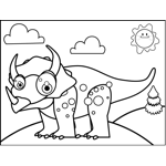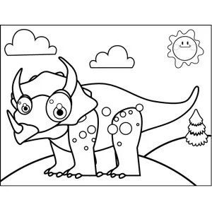 Happy Triceratops Printable Coloring Page, free to download and print. There's a cute, happy triceratops with spotted legs in this printable dinosaur coloring page.