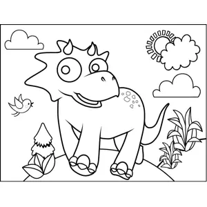 Running Triceratops Printable Coloring Page, free to download and print. Young students will love filling in this printable dinosaur coloring page of a happy triceratops that is running through the forest.