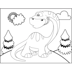Worried Dinosaur Printable Coloring Page, free to download and print. A striped dinosaur with a long neck looks nervous and anxious in this printable prehistoric coloring page.