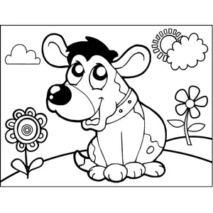 Cheerful Barking Dog Printable Coloring Page, free to download and print. The dog in this printable animal coloring page has a dark head of hair, floppy ears and an adorable smile as it barks.