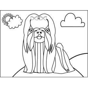Cute Maltese Dog Printable Coloring Page, free to download and print. The Maltese puppy in this printable animal coloring page has ribbons and bows tied into its long fur.