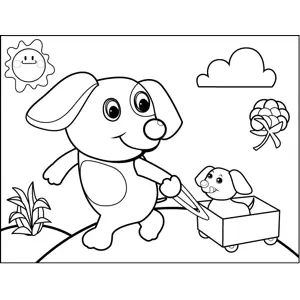 Dog Pulling Puppy in Wagon Printable Coloring Page, free to download and print. A spotted pooch pulls it's puppy along in a wagon in this printable animal coloring page.