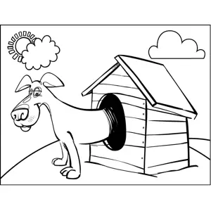 Dog in Kennel Printable Coloring Page, free to download and print. Great for young artists with pets, this printable animal coloring page contains a happy dog standing in his dog house.