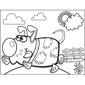 Frolicking Dog Printable Coloring Page, free to download and print. Wearing a color and covered in patches, the tiny dog in this printable animal coloring page frisks and frolics in a field.