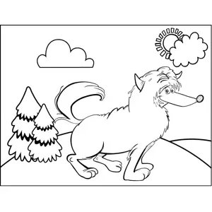 Happy Fluffy Dog Printable Coloring Page, free to download and print. A fluffy, hairy dog raises its tail and smiles in this printable animal coloring page for pet-lovers.