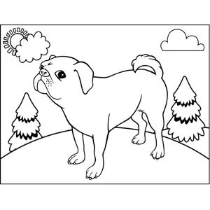 Proud Bull Terrier Printable Coloring Page, free to download and print. Perfect for young pet owners, this printable animal coloring page features a proud bull terrier standing among trees.