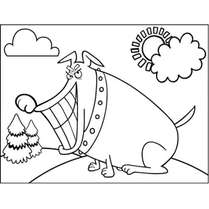 Sinister Dog Printable Coloring Page, free to download and print. The dog in this printable animal coloring page is wearing a studded collar and grinning in a sinister fashion.