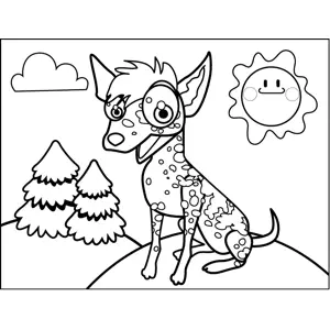 Spotted Dog Printable Coloring Page, free to download and print. Great for animal art activities, this printable dog coloring page displays a cute little Chihuahua covered in spots.