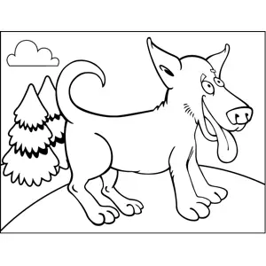 Wild Dog Printable Coloring Page, free to download and print. The wild dog in this printable animal coloring page is happily waving its tail and sticking its tongue out.