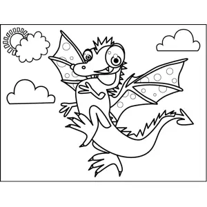 Proud Dragon Printable Coloring Page, free to download and print. The cute, proud dragon in this printable fantasy coloring page has spotted wings and spiky spinal fins when it floats in the air.