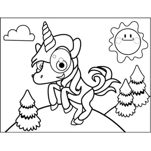Rearing Unicorn Printable Coloring Page, free to download and print. A cute unicorn with big eyes rears up on its hind legs in this printable fantasy coloring page.