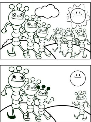 FTD Bugs Printable Coloring Page, free to download and print. Great for quiet activities and art, this printable coloring page shows several differences between the two pictures of happy, dancing ants.