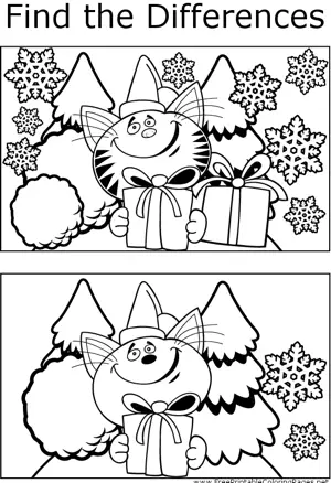 FTD Christmas Cat Printable Coloring Page, free to download and print. Observant students will notice several differences between the two pictures of a Christmas cat and holiday present in this printable coloring page.