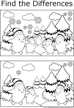 FTD Christmas Penguins Printable Coloring Page, free to download and print. Observant students will notice several differences between the two pictures of happy penguins in snow hats in this printable coloring page.