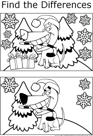FTD Christmas Puppy Printable Coloring Page, free to download and print. Teachers can use this printable coloring page to help students spot the differences between two pictures of a Christmas puppy with a candy cane between its teeth.