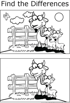 FTD Goat Printable Coloring Page, free to download and print. If you look carefully, you can find differences between the two pictures of happy goats in this printable coloring page for kids.