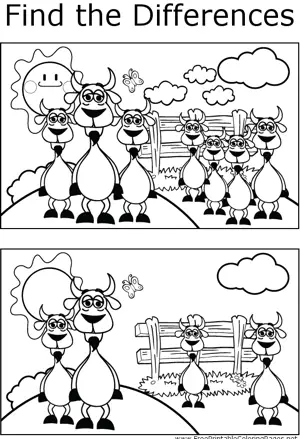 FTD Goats Printable Coloring Page, free to download and print. The two scenes of standing goats depicted in this printable coloring page have several key differences that can be found.