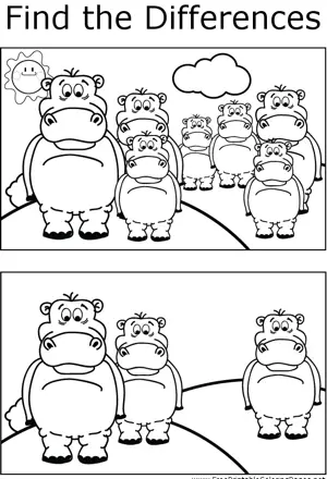 FTD Hippos Printable Coloring Page, free to download and print. A number of differences can be found between the two pictures of hippos standing on their hind legs.