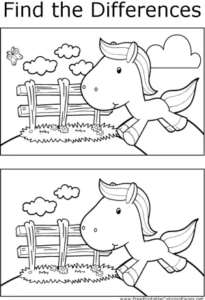 FTD Jumping Horse Printable Coloring Page, free to download and print. The two scenes of a horse jumping through a field depicted in this printable coloring page have several key differences that can be found.