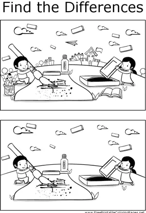FTD Kids Painting Printable Coloring Page, free to download and print. Great for quiet activities and art, this printable coloring page shows several differences between the two pictures of kids painting with giant art tools.