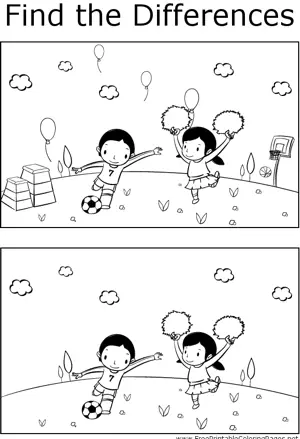 FTD Kids Playing Soccer Printable Coloring Page, free to download and print. Hone your observation skills by finding the differences between the two pictures of kids playing with a soccer ball in this printable coloring page.