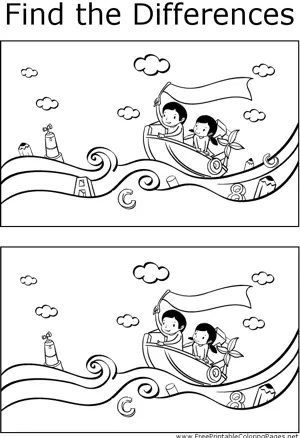 FTD Kids Sailing Printable Coloring Page, free to download and print. A number of differences can be found between the two pictures of two kids sailing on a boat through the ocean.