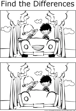 FTD Kids in Car Printable Coloring Page, free to download and print. Observant students will notice several differences between the two pictures of children driving a car in this printable coloring page.
