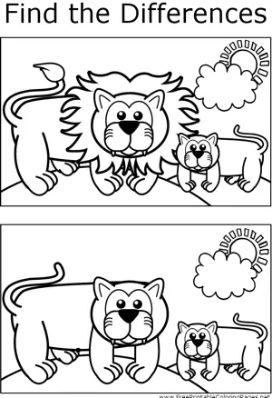 FTD Lionesses Printable Coloring Page, free to download and print. Great for quiet activities and art, this printable coloring page shows several differences between the two pictures of lionesses and a cub.