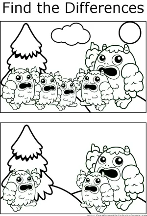FTD Monsters Printable Coloring Page, free to download and print. The two scenes of horned monsters depicted in this printable coloring page have several key differences that can be found.