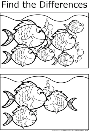 FTD School of Fish Printable Coloring Page, free to download and print. The two scenes of a school of fish depicted in this printable coloring page have several key differences that can be found.