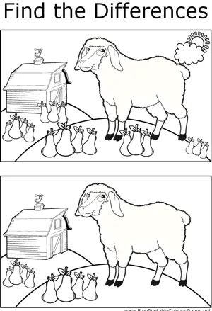 FTD Sheep and Pears Printable Coloring Page, free to download and print. Observant students will notice several differences between the two pictures of a sheep and pears on a farm in this printable coloring page.