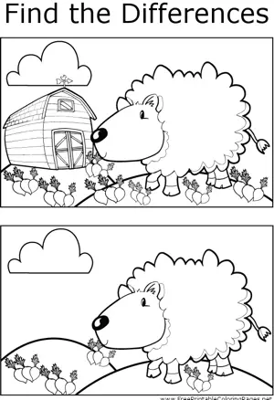 FTD Sheep and Radishes Printable Coloring Page, free to download and print. Teachers can use this printable coloring page to help students spot the differences between two pictures of a sheep and radishes on a farm.
