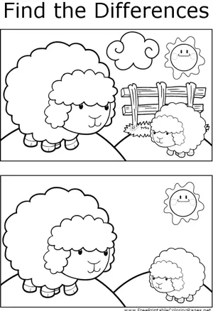 FTD Sheep on Hill Printable Coloring Page, free to download and print. Great for quiet activities and art, this printable coloring page shows several differences between the two pictures of two sheep on a hill.