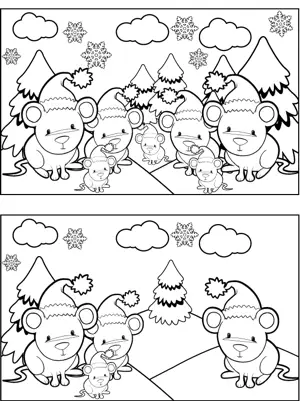 FTD Snowmen Printable Coloring Page, free to download and print. There are several differences that can be found between the two pictures of snowmen wearing top hats in this printable coloring page for children.