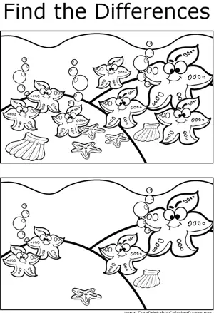 FTD Starfish Printable Coloring Page, free to download and print. Find the differences between the two pictures in this printable coloring page featuring a number of starfish lying on the bottom of the ocean.