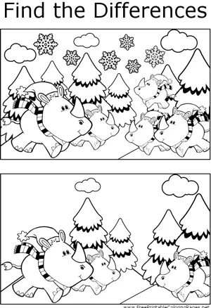 FTD Winter Rhinos Printable Coloring Page, free to download and print. Observant students will notice several differences between the two pictures of winter rhinos wearing scarves in this printable coloring page.