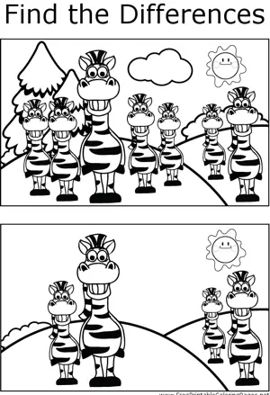 FTD Zebras Printable Coloring Page, free to download and print. The two scenes of standing zebras depicted in this printable coloring page have several key differences that can be found.