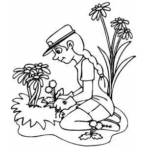 Girl Working With Flowers coloring page
