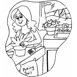 Woman Potting Plants coloring page