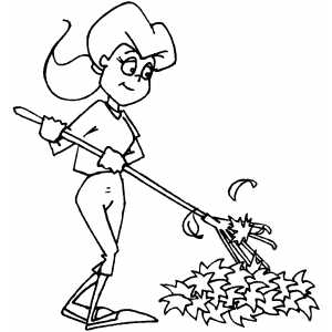 Woman Raking Leaves coloring page