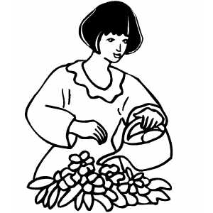 Woman Watering Flowers coloring page
