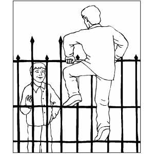 Man Climbing Cemetery Fence coloring page