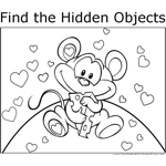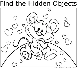 Mouse and Cheese Printable Coloring Page, free to download and print. Find the hidden object in this printable picture of the happy mouse lovingly holding a wedge of cheese.